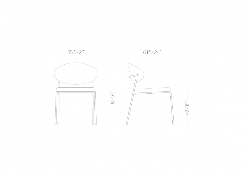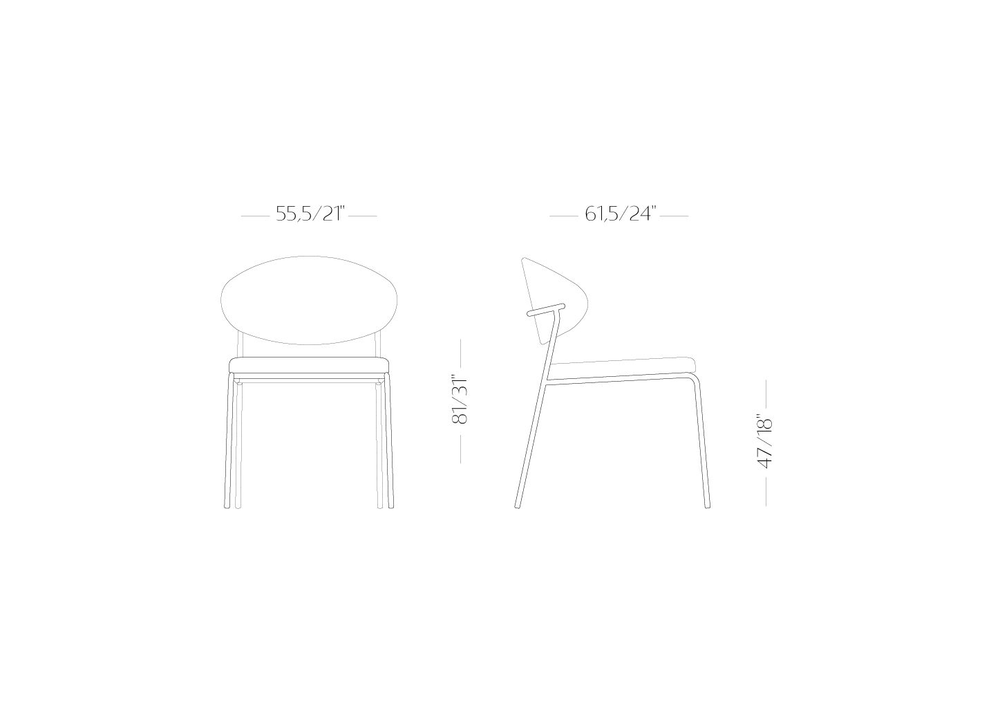 Con estructura metálica y asiento y respaldo tapizados, la silla MH
