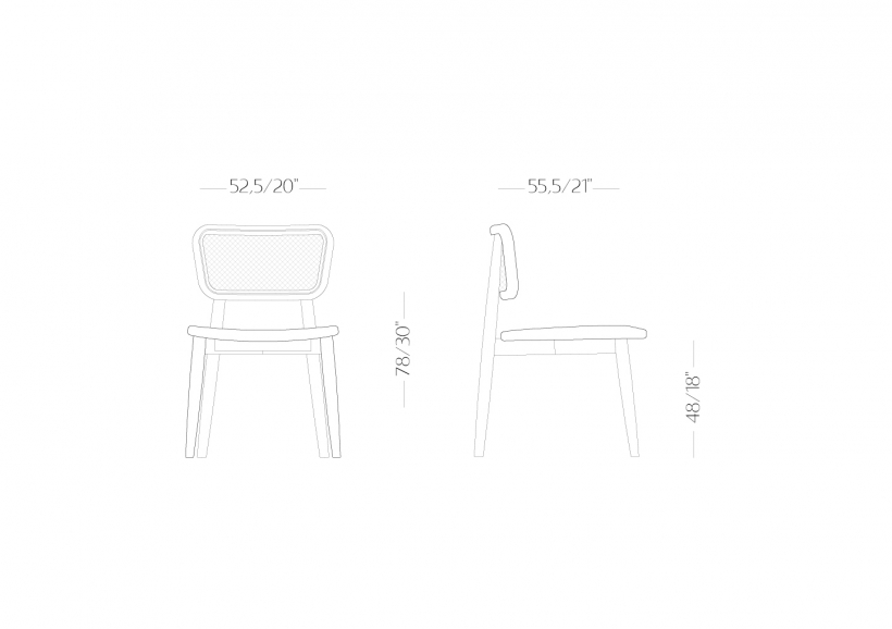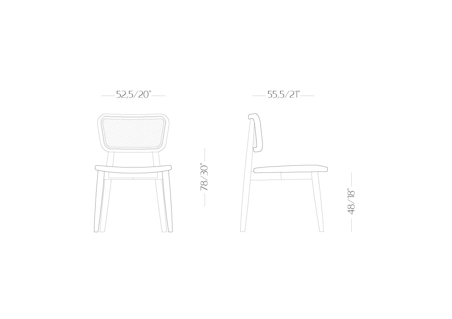 y respaldo con paja natural. Las líneas suaves de esta silla de comedor.