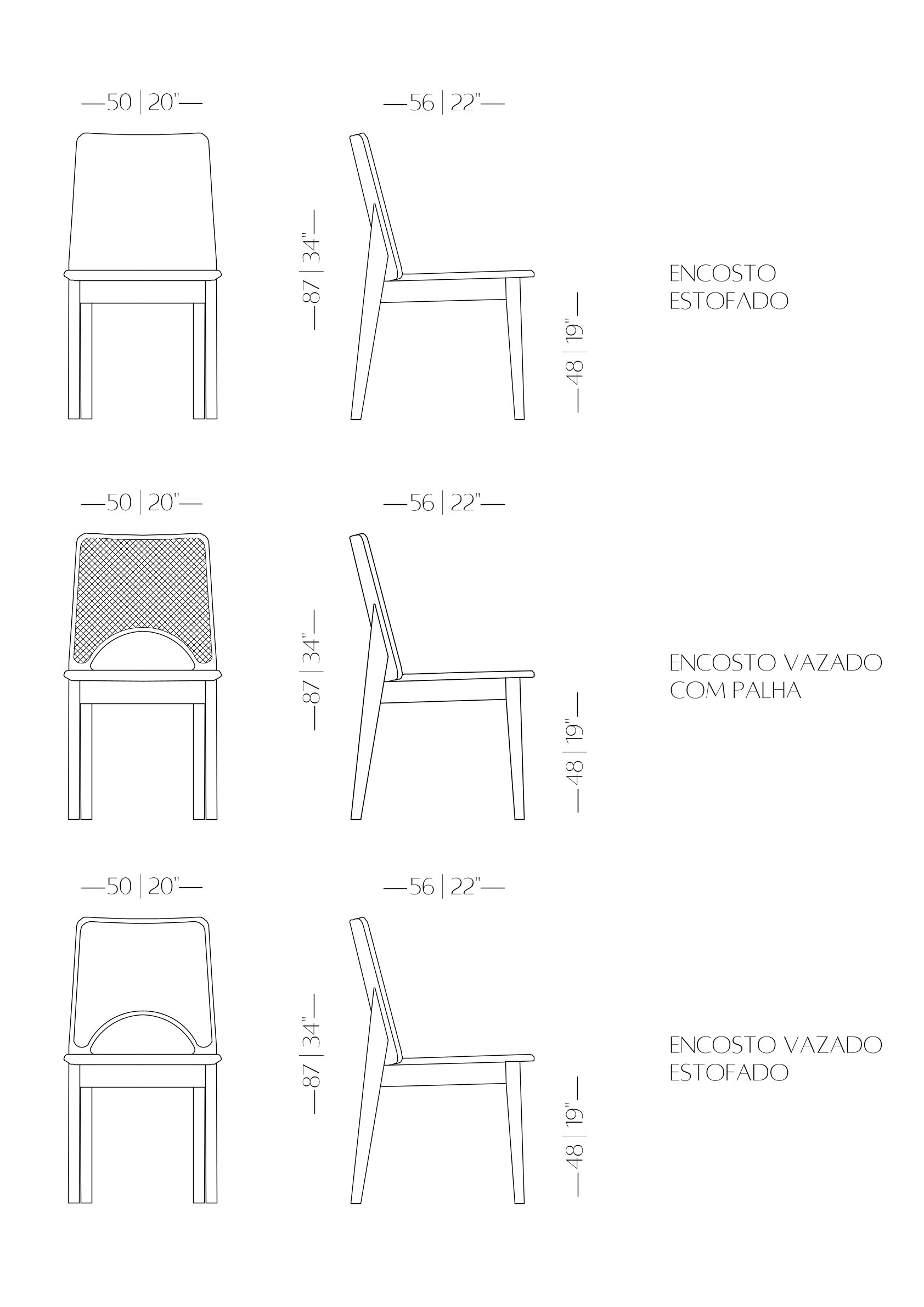 Cadeira de jantar com estrutura de madeira maciça e assento e encosto estofados. As formas puras desta cadeira de jantar ressaltam os detalhes de seu acabamento, criando um visual simples e elegante, ideal para todos os estilos de salas de jantar.