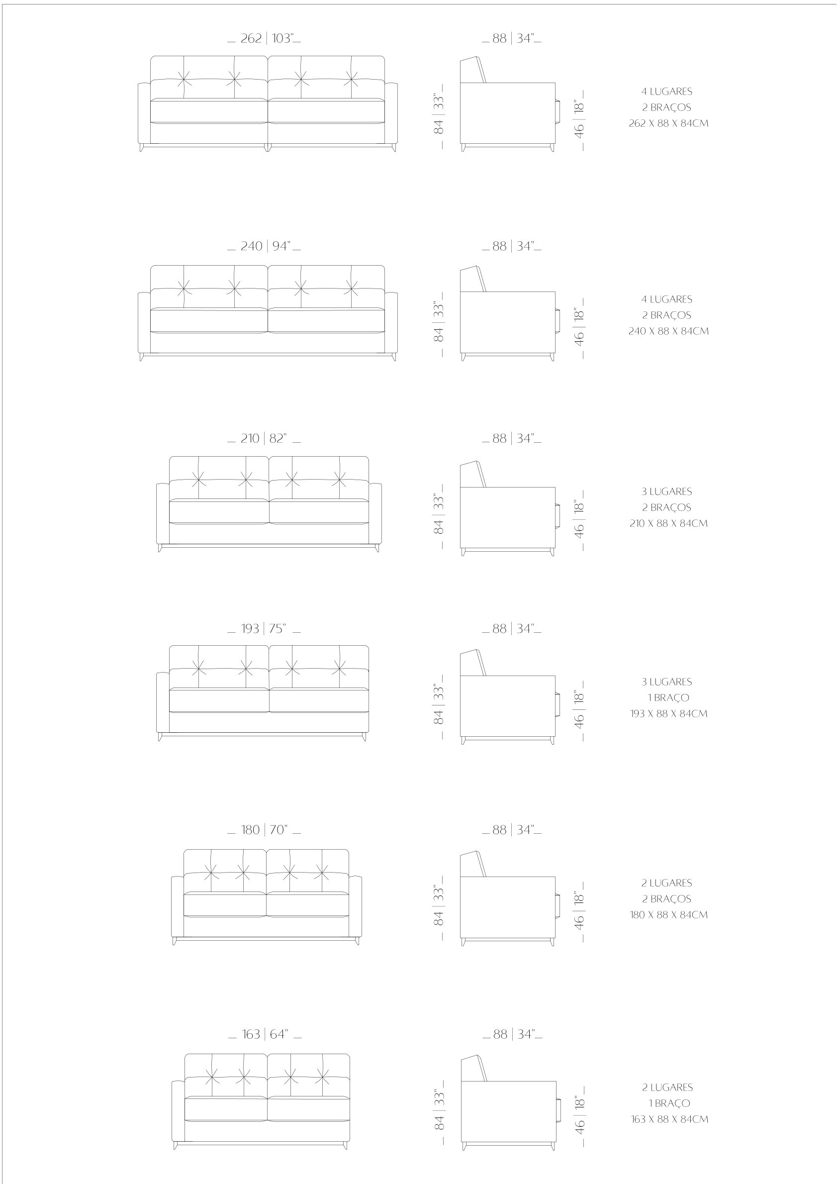 Estofado living com formas puras e visual clean, com estrutura de madeira maciça e assento e encosto estofados. A base de madeira maciça com acabamento natural destaca o tecido e a costura do encosto, trazendo estilo e personalidade para esta peça contemporânea.