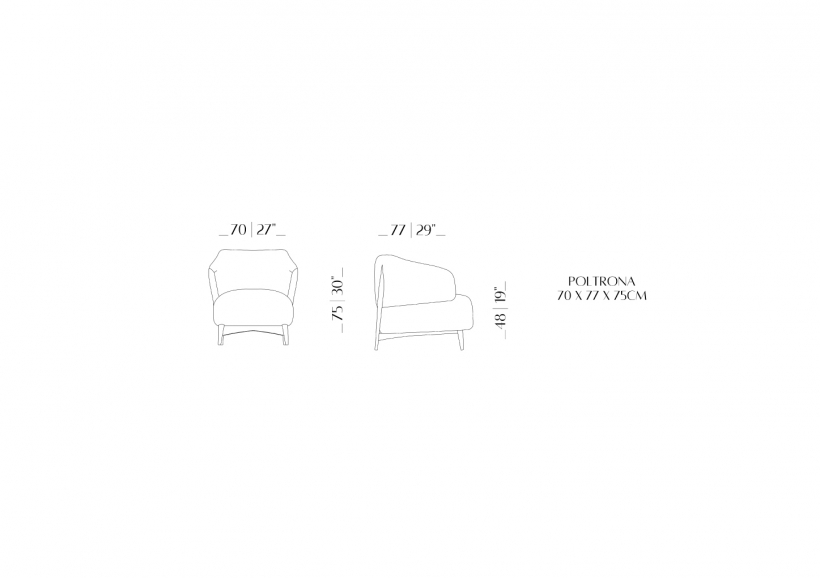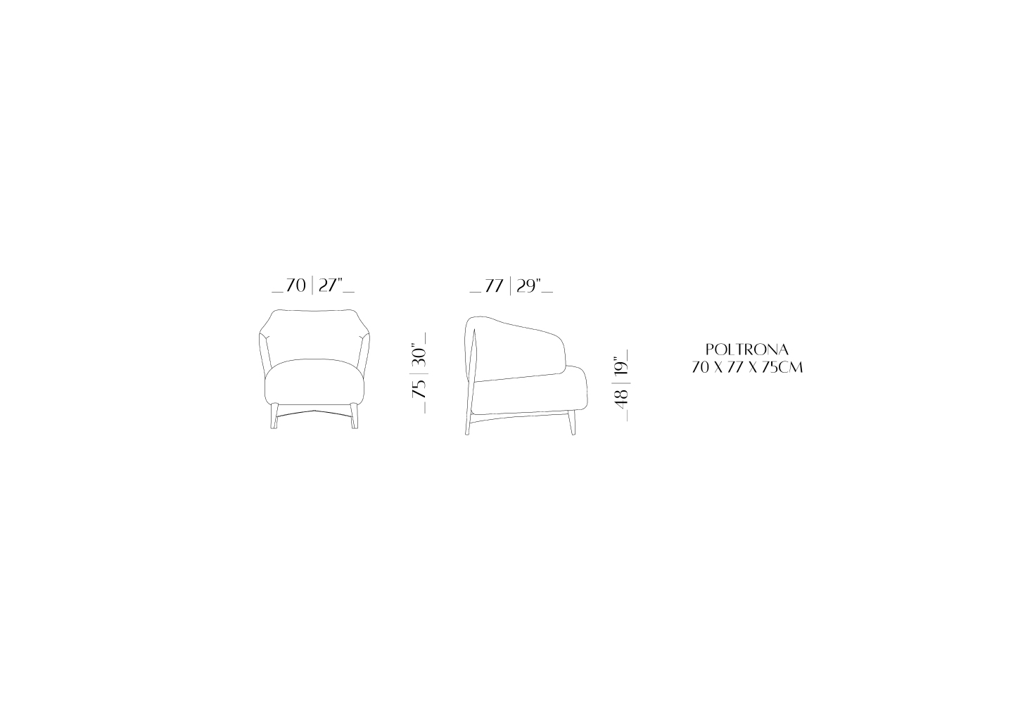 With soft shapes and a design that invites comfort, this armchair combines aesthetics and functionality in the right measure. Structured with medium-density foam and elastic straps, it offers a soft and welcoming seat. The solid wood legs bring lightness and a natural touch to the set, enhancing any environment with charm, personality and sophistication.