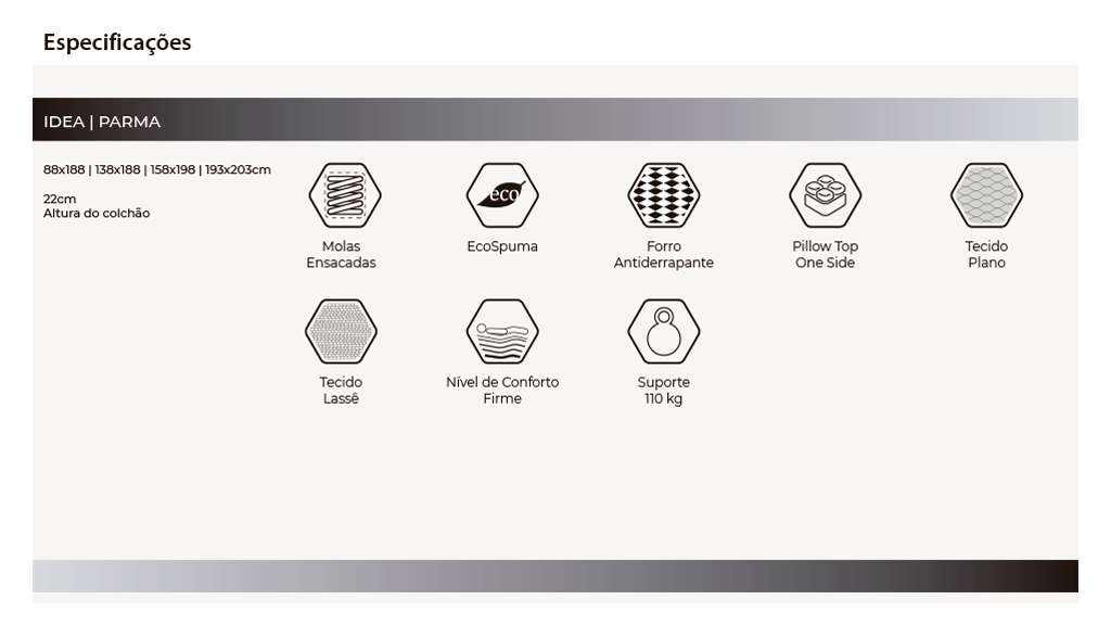 Colchão Pillow Top One Side possui camada de conforto localizada na parte superior do colchão, sobre o molejo, por sua concepção não há necessidade de virar o colchão, apenas gira-lo periodicamente para garantir que a espuma se acomode de forma mais uniforme. (Sugere-se virar o colchão a cada 14 dias).