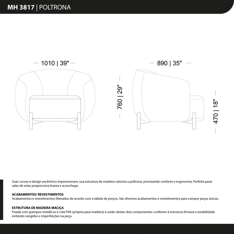Acabamentos e revestimentos liberados de acordo com a tabela de preços. São diversos acabamentos e revestimentos para compor peças únicas. A poltrona em questão é uma verdadeira obra-prima do design, encantando a todos com suas curvas e estilo excêntrico. Sua estrutura de madeira valoriza ainda mais sua beleza, enquanto proporciona conforto e ergonomia incomparáveis. Ideal para salas de estar, essa poltrona agrega uma sensação de leveza e aconchego, tornando-se o lugar perfeito para relaxar e desfrutar de momentos especiais em grande estilo.