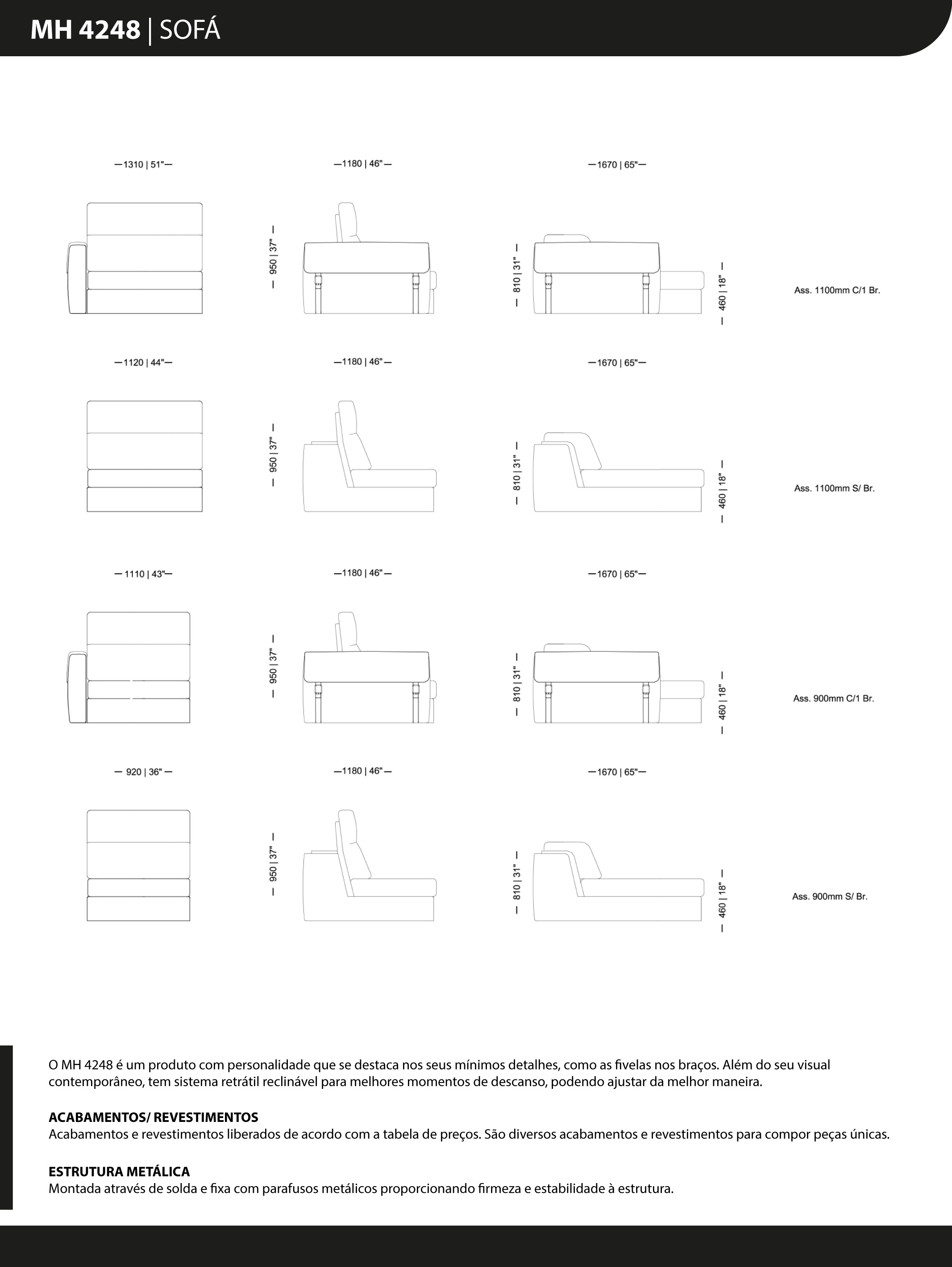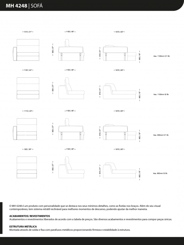 O MH 4248 é um produto singular que se destaca por sua personalidade única, evidente até nos detalhes mais sutis, como as elegantes fivelas nos braços. Além de sua estética contemporânea, apresenta um sofisticado sistema retrátil reclinável, permitindo momentos de descanso inigualáveis, com possibilidade de ajuste para uma experiência de conforto excepcional.