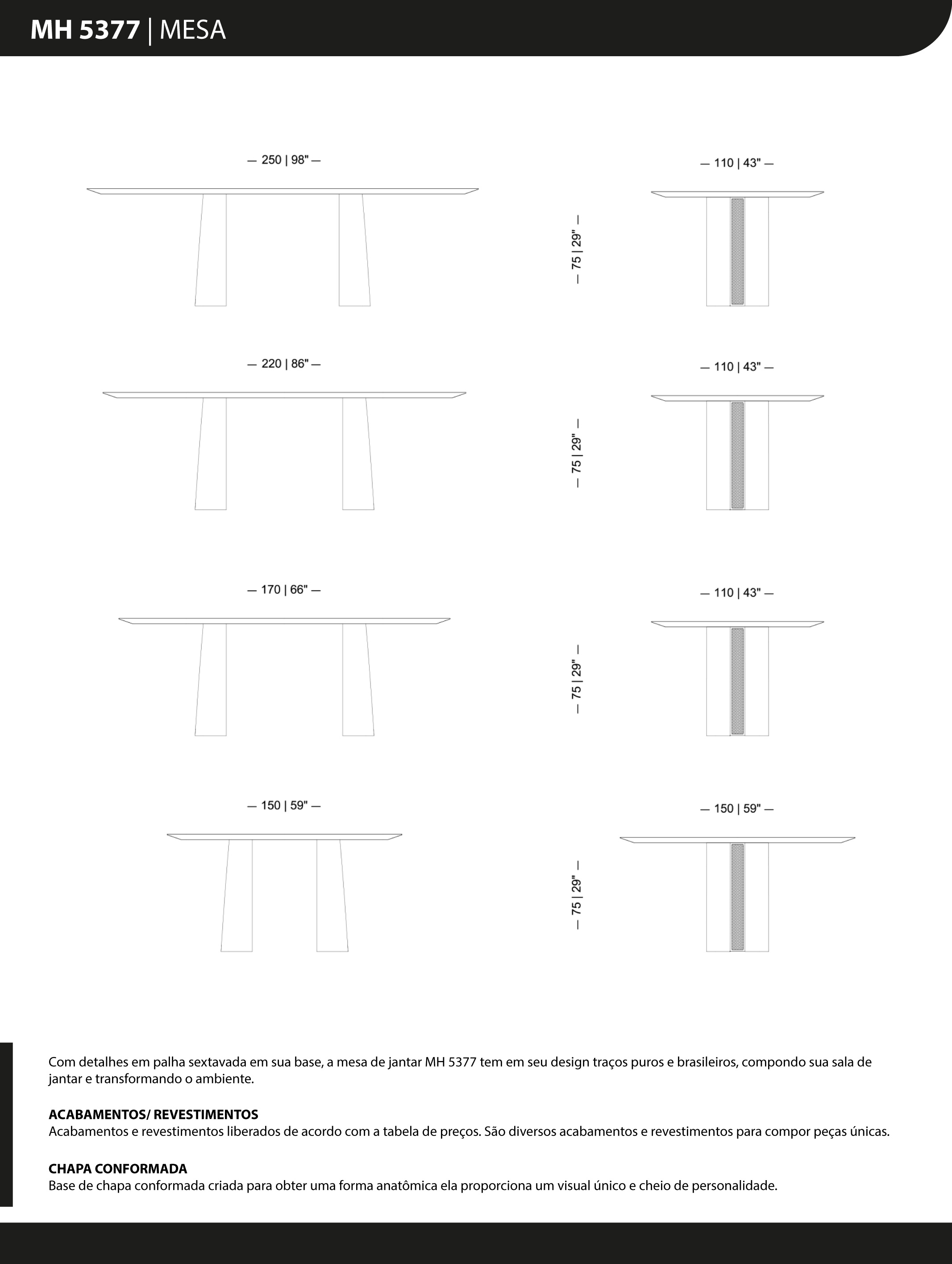 A mesa de jantar MH 5377 é uma verdadeira joia de design, com detalhes em palha sextavada em sua base que conferem um toque de elegância e autenticidade. Seu design único apresenta traços puros e inspirados no estilo brasileiro, trazendo uma atmosfera de sofisticação para a sua sala de jantar. Essa peça excepcional não apenas compõe o ambiente, mas o transforma em um espaço encantador, onde a beleza e o charme se unem para proporcionar momentos inesquecíveis à mesa. Com a MH 5377, suas refeições ganham um toque especial e suas celebrações são enriquecidas com o esplendor de uma mesa verdadeiramente marcante.