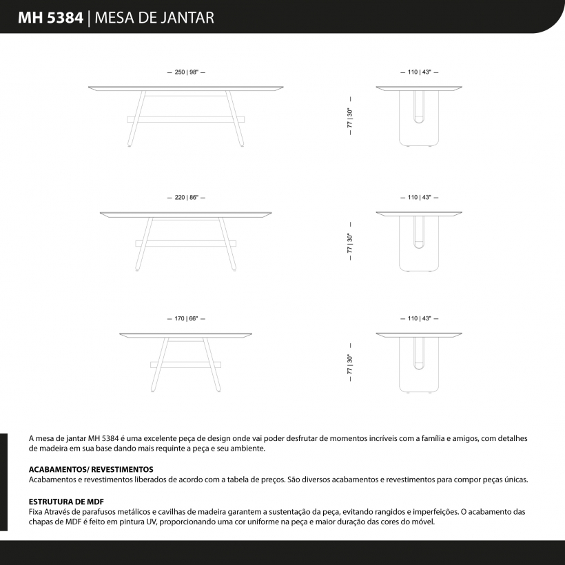 A mesa de jantar MH 5384 é uma excelente peça de design onde vai poder desfrutar de momentos incríveis com a família e amigos, com detalhes de madeira em sua base dando mais requinte a peça e seu ambiente.