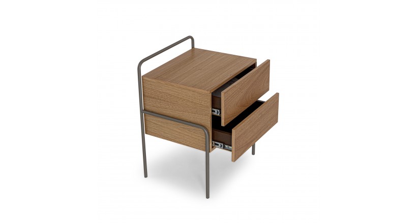 ESTRUTURA METÁLICA nos pés, montada através de solda e fixa com parafusos metálicos proporciona firmeza e estabilidade à peça. MDF. Fixo através de parafusos metálicos e cavilhas de madeira garante a sustentação da peça, evitando rangidos e imperfeições. LÂMINA DE MADEIRA. Fina folha de madeira desbastada de uma peça sólida, que mantém a textura, o grão e a cor da sua madeira de origem. Resultando em um acabamento orgânico que agrega beleza natural e requinte para peça. CORREDIÇA METÁLICA, garante maior durabilidade e suavidade no deslizamento das gavetas, oferecendo praticidade no uso diário. Seu mecanismo resistente proporciona abertura estável e segura, contribuindo para o bom funcionamento da peça.