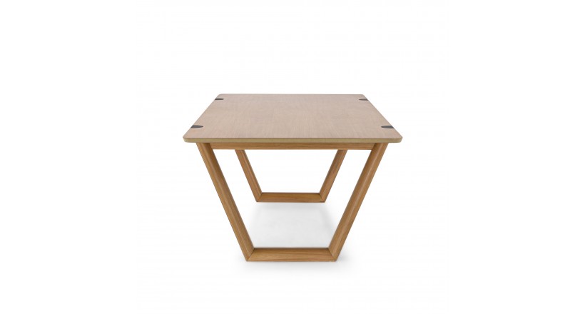 em MDF laminado com recortes para a base, transmite acolhimento e
