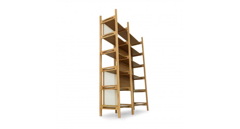 espaços comerciais, ela acomoda livros, objetos decorativos e muito