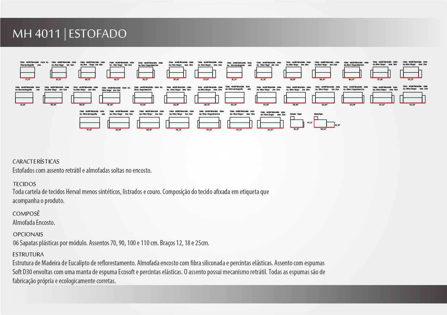 Estofado com visual contemporâneo utilizando de elementos de design únicos. Os detalhes no seu assento trazem charme e personalidade ao produto, sua função retrátil deixa a peça mais elegante e ideal para todos os estilos de ambientes.