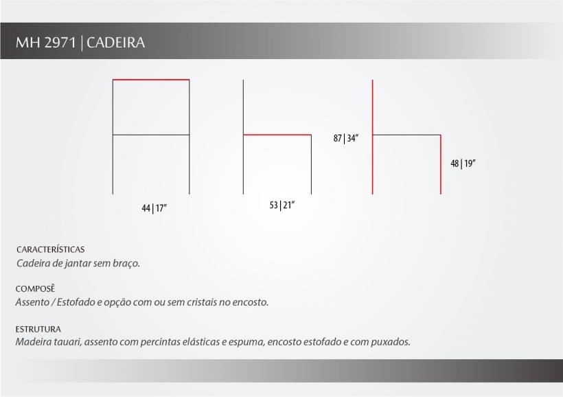 CRISTAIS SWAROVSKI Esta cadeira de jantar possui a opção de aplicação de cristais Swarovski no encosto, um detalhe de agrega elegância e sofisticação a esta peça.