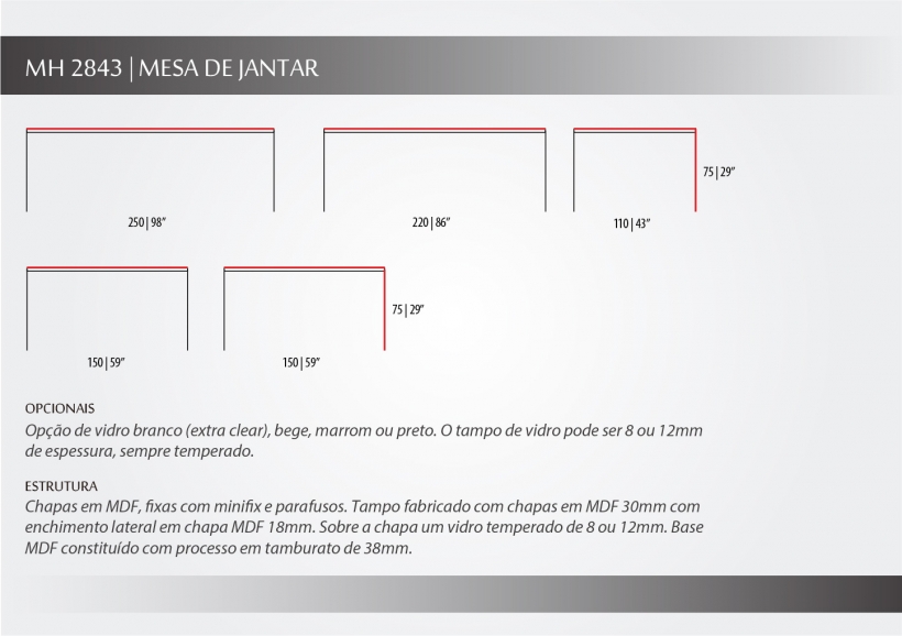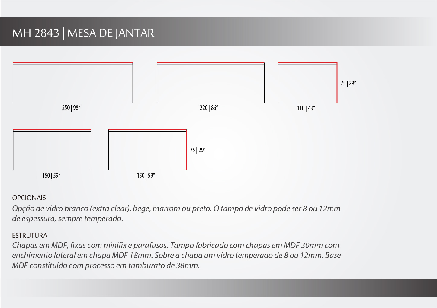 Com visual atemporal a mesa de jantar MH 2843 possui elegância e personalidade. Sua base com detalhe vazado sustenta o tampo com charme e elegância, inspiradora esta mesa de jantar se encaixa perfeitamente em todos os tipos de decoração. As diferentes opções de tamanho permitem que você encontre a tamanho ideal de mesa para a sua sala de jantar.