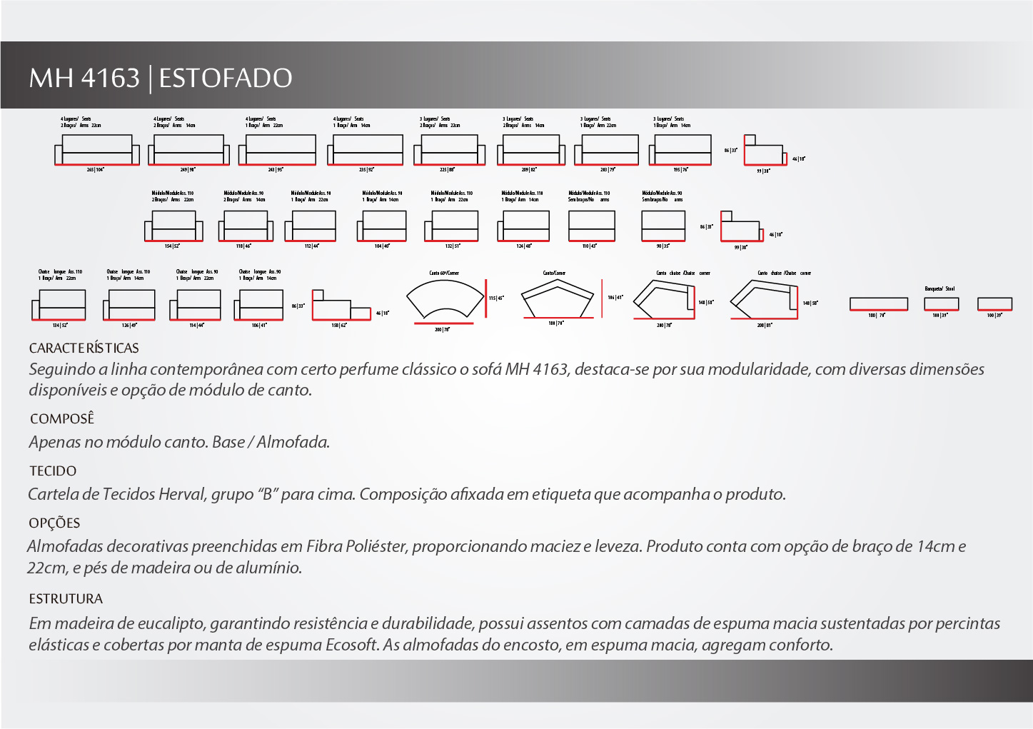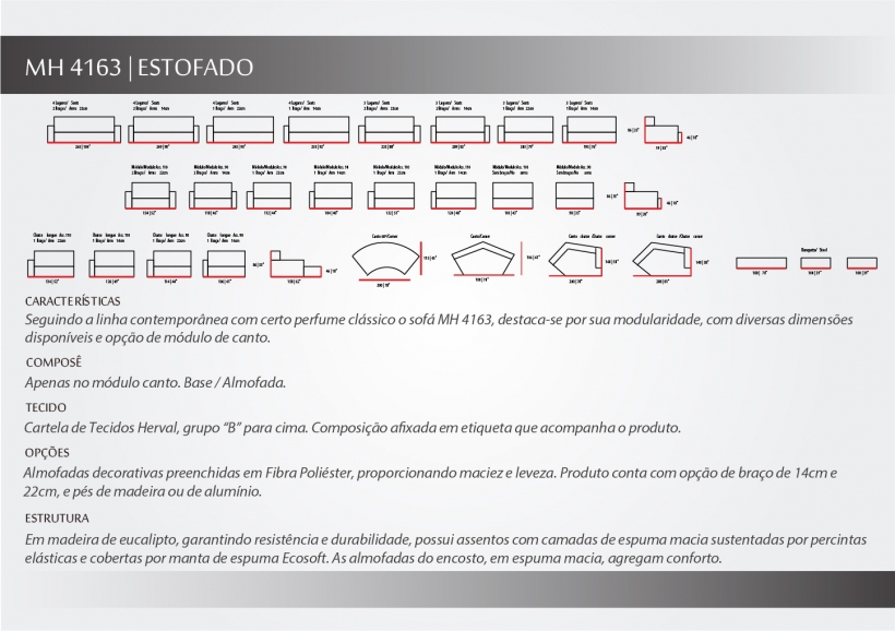 Seguindo a linha contemporânea o MH 4163, destaca-se por seu design leve, que traz comodidade ao local somente pela sua presença. Possui diversos tamanhos para conquistar os mais diversos gostos.
