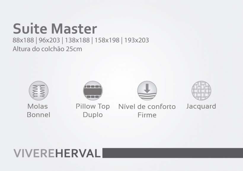 O colchão Suíte Master foi desenvolvido para você que busca um conforto mais uniforme em seu colchão Herval. O sistema de molas Bonnel em conjunto com as camadas de conforto do produto, permite um suporte uniforme em toda estrutura do colchão, garantindo durabilidade e uma vida útil maior ao produto.