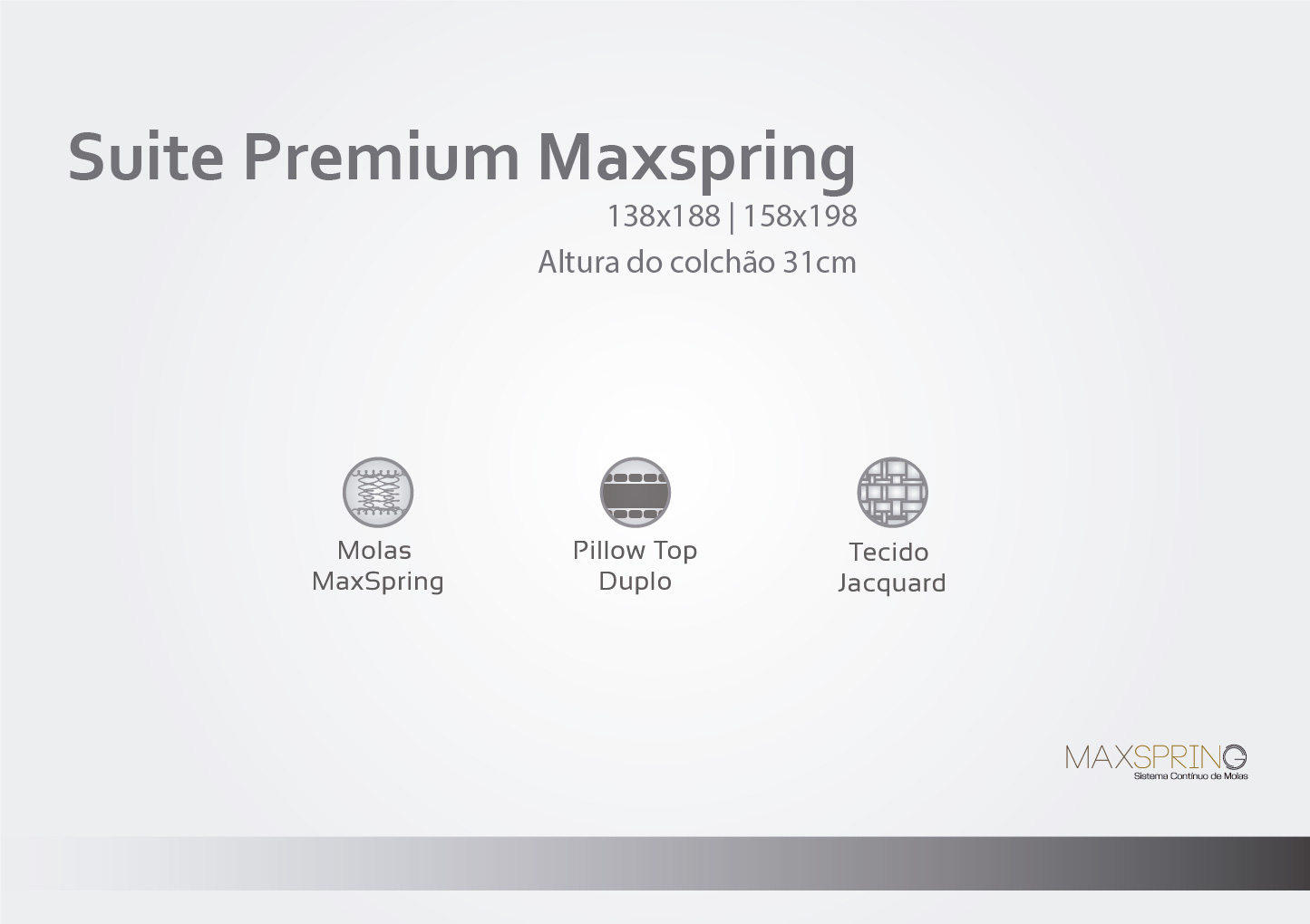 Maxspring é marca própria Herval de sistema de molejo contínuo. Um corpo único, monobloco, de molas entrelaçadas, em aço, submetido a processo de alívio de tensão. Tecnologia Europeia, que resulta em resiliência uniforme e perene. Benefício: alto suporte ao colchão e conforto contínuo a seus usuários, mesmo com o passar do tempo.