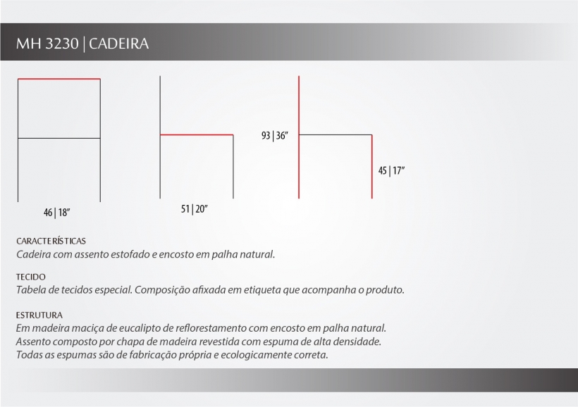 A cadeira de jantar MH 3230 conta com conforto extra. O assento possui espumas de alta densidade e de qualidade superior envoltas por uma manta de espuma ecosoft, proporcionando mais conforto e maciez. O visual com formas puras e a palha natural do encosto tornam essa cadeira perfeita para todos os tipo de ambiente.