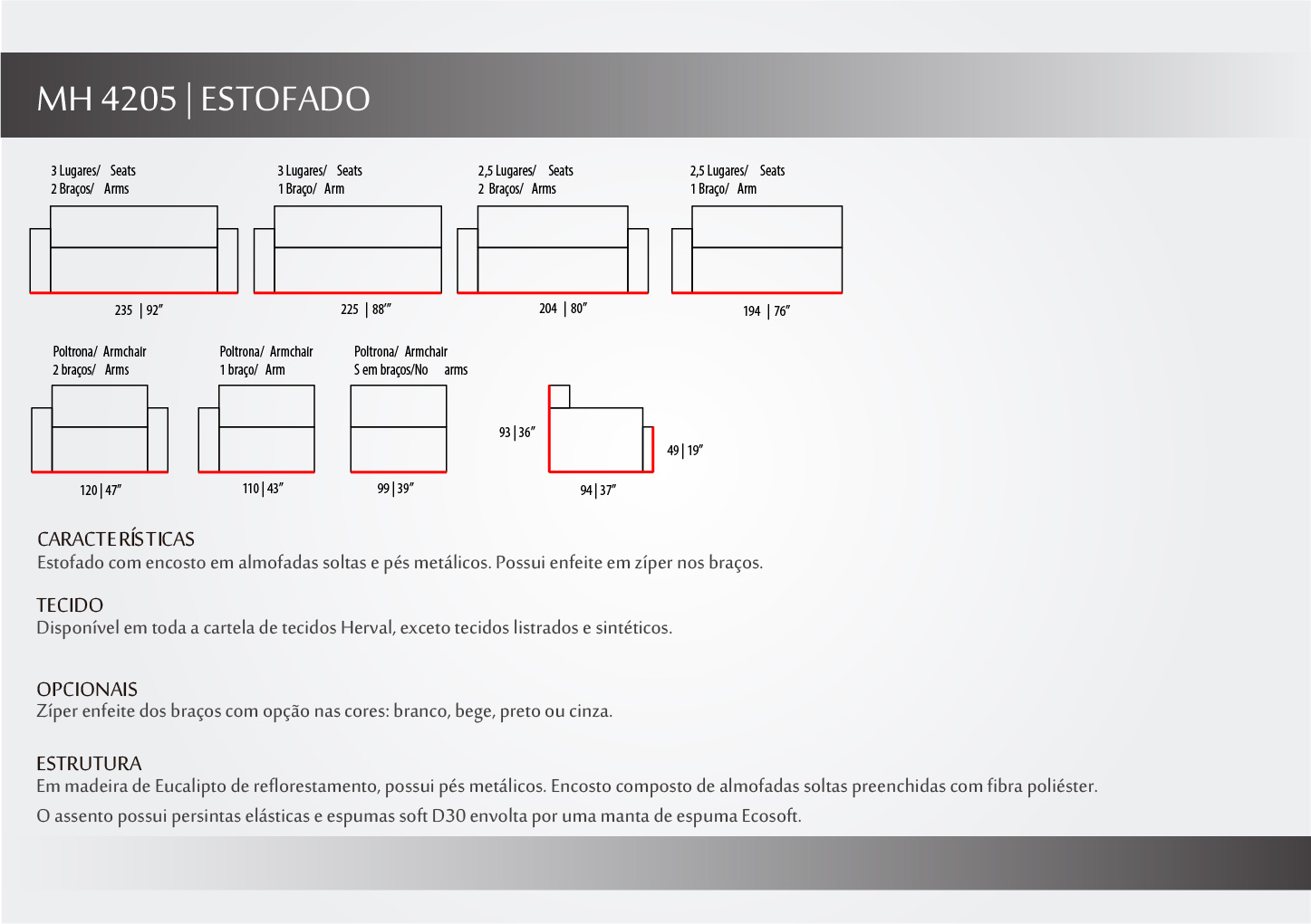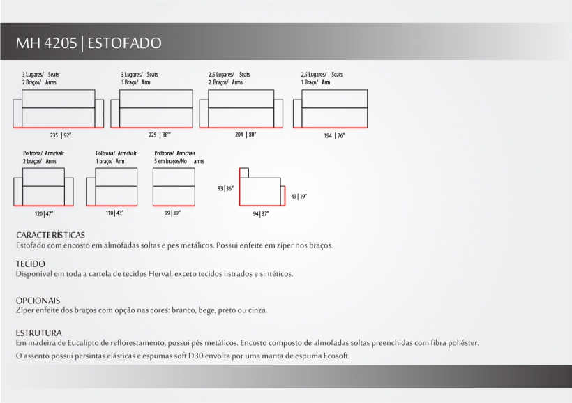 Estofado com visual contemporâneo e aconchegante. O detalhe em dobra do braço com zíper traz estilo e personalidade ao modelo. Os pés metálicos, além de garantir a sustentação e estabilidade do móvel, deixam o modelo muito mais leve e Soave. As almofadas soltas preenchidas com fibra do encosto trazem conforto e praticidade no momento de limpeza da peça.