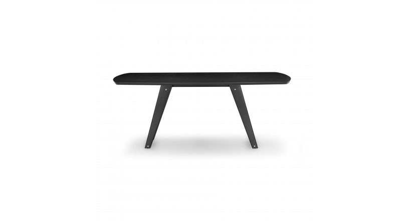 Mesa de jantar com tampo de duas opções de tampo, semioval e retangular com vidro colado. O visual de formas puras e mescla entre a madeira e o vidro transformam esta mesa de jantar em uma peça ímpar em qualquer ambiente de jantar.