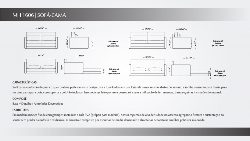 Sofá cama confortável e prático que combina perfeitamente design com a função dois em um, apresentando o padrão de qualidade Herval. Além de servir como um excelente estofado, este modelo pode tornar-se uma cama para casal sem complicação ou esforço algum. Estenda o mecanismo abaixo do assento e tombe o assento para frente para ter uma cama para dois, com suporte e colchão inclusos. Tudo isso pode ser feito por uma pessoa só e sem a utilização de ferramentas, basta seguir as instruções do manual.